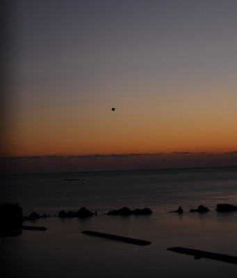 宿泊先のロイヤルホテルから見た日の出。橋杭岩がとても心にのこりました